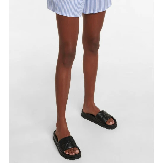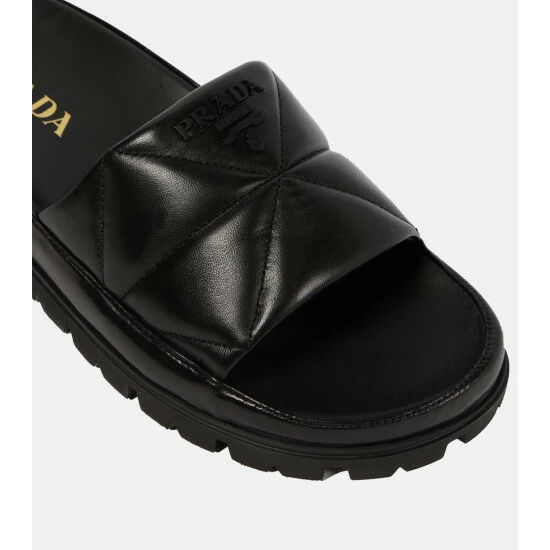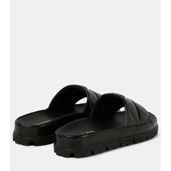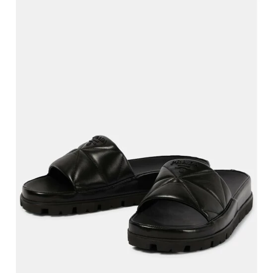 Made from Prada’s label-signature diamond-quilted nappa leather, these slides are a simple, yet stylish silhouette. They’re adorned with tonal logo-detailing, and have molded footbeds and lugged soles for everyday comfort and practicality.