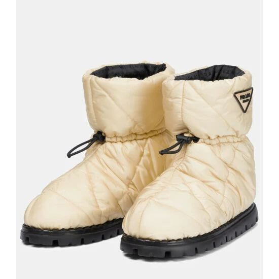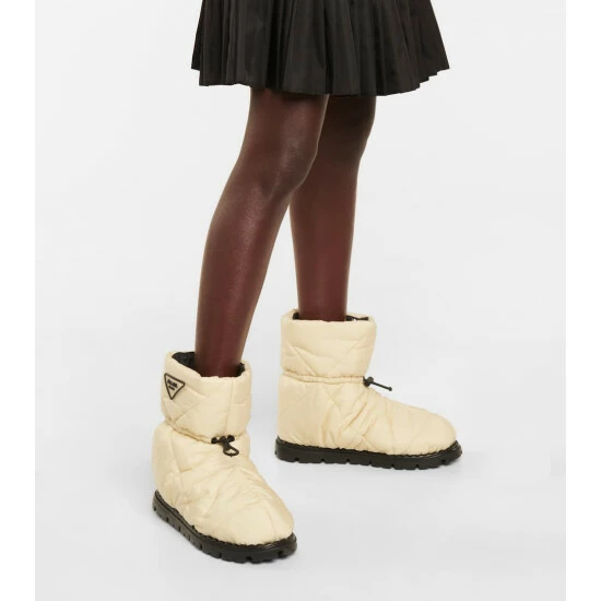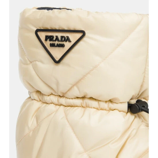 Remain well-protected from the elements, courtesy of these snow boots from Prada. Made from white nylon uppers – quilted and toggled for optimum insulation – they’re illuminated with triangular rubber logo plaques.