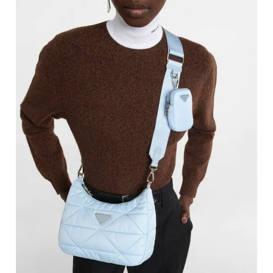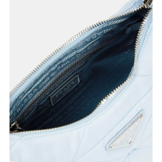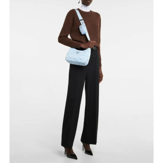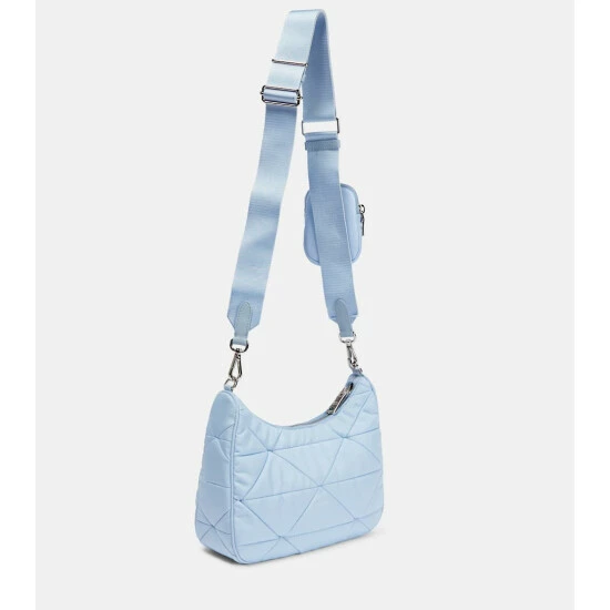 This shoulder bag features triangular quilting as a nod to Prada’s iconic emblem logo, which also takes pride of place at the front. It has a curved silhouette, an adjustable logo-jacquard strap, and a coordinating pouch.