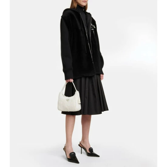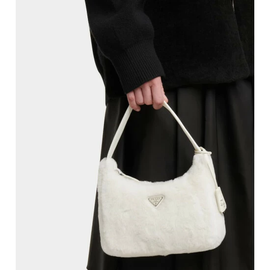 Enjoy a Noughties style throwback with this shoulder bag from Prada, which is a re-edition of a design launched in the 2000s. It’s made from white shearling into a distinctively streamlined silhouette, and is finished with the iconic triangular logo plaque.