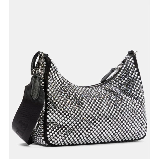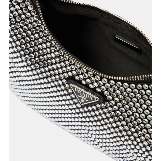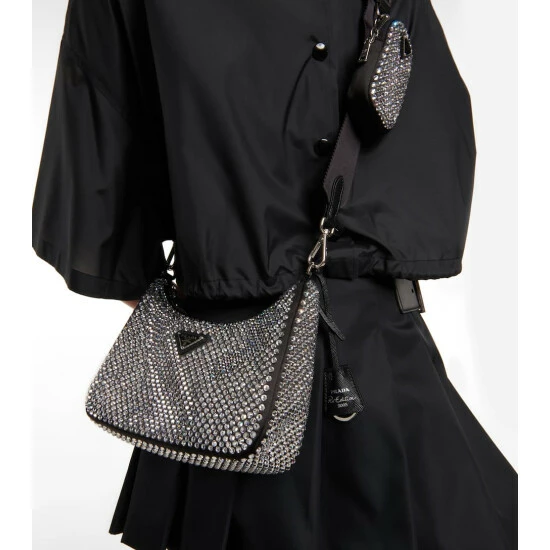This rendition of Prada’s iconic Re-Edition 2005 shoulder bag is encrusted with crystals. It’s made from satin with a detachable chainlink strap, leather trims, and detachable pouch and keychain. It’ll be the focal point of any ensemble.