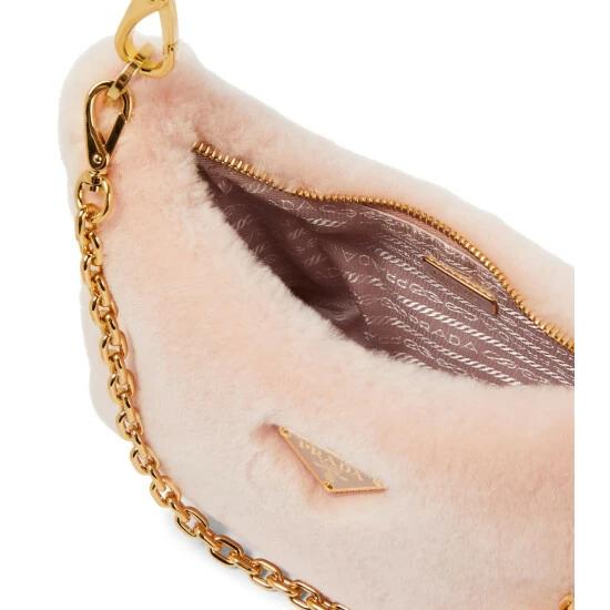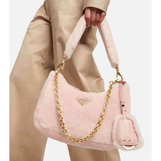 Enjoy a Noughties style throwback with this shoulder bag from Prada, which is a re-edition of a design launched in the 2000s. Made from plush pink shearling, it’s given a wintry update with gold-toned hardware.