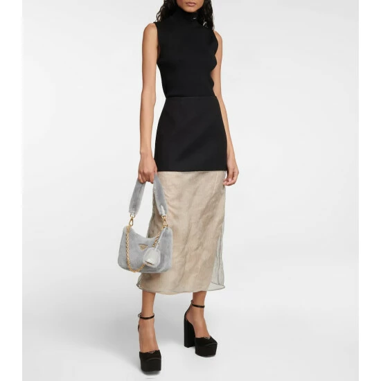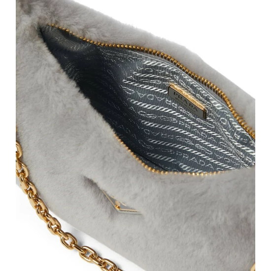 Enjoy a Noughties style throwback with this shoulder bag from Prada, which is a re-edition of a design launched in the 2000s. Made from plush blue shearling, it’s given a wintry update with gold-toned hardware.