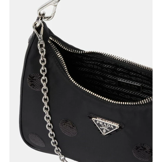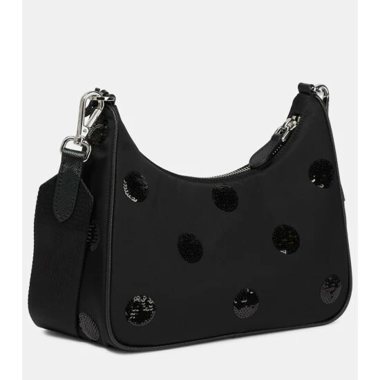 Updated with sequin-embroidered polka dots, this Small shoulder bag is Prada’s latest take on the beloved Re-Edition 2005 silhouette. Made from regenerated, recycled nylon, it has versatile straps and a removable pouch and keychain that Prada fans will love.