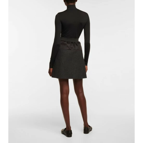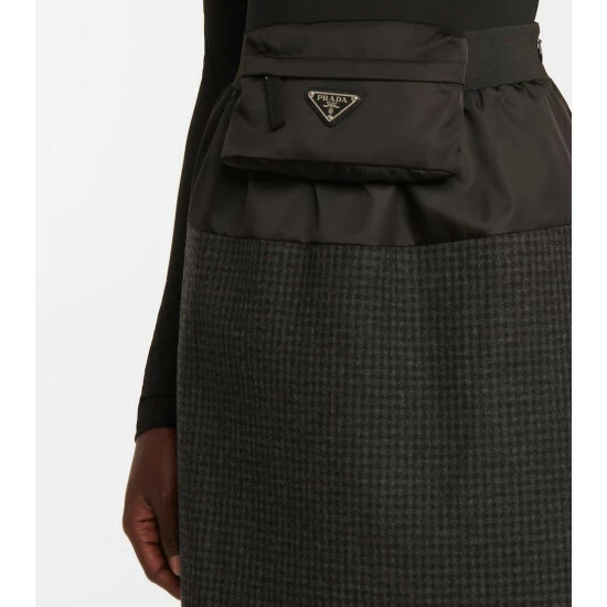 Prada’s own particular approach to design results in this black Re-Nylon and checked wool skirt. At its center, you’ll see a logo-adorned pouch, which now graces the majority of the house’s cult-status accessories.