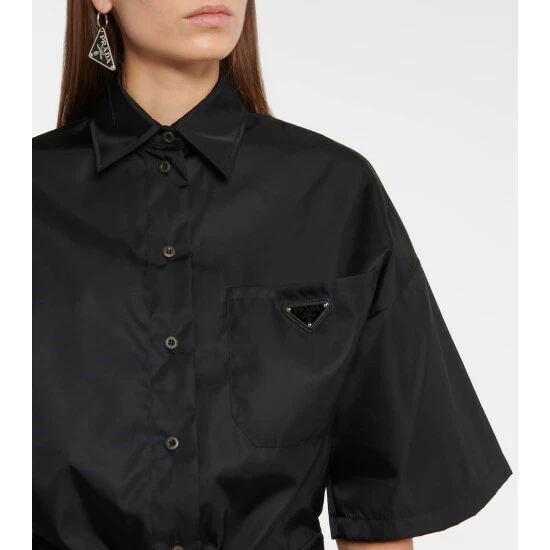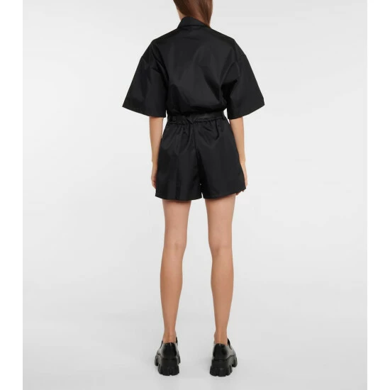 Clear lines, a simple silhouette and a dash of utility spirit: there’s so much to love about this black playsuit from Prada. It’s cut from Re-Nylon โ the label’s by now well-known regenerated nylon โ, and has a shirt top with coolly dropped shoulders and a waist belt to cinch the silhouette. Pair with buckled biker boots to work the house’s off-beat theme.