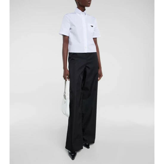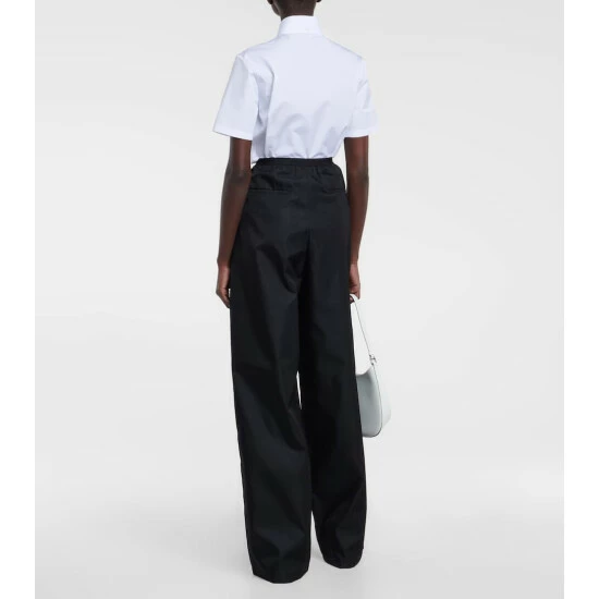 Offering a more sustainable take on a signature fabric, Prada’s Re-Nylon products are made from regenerated ocean plastic waste. These pants are shaped with wide legs and a high-rise elasticated waist with subtle logo detailing.