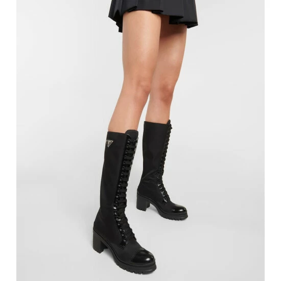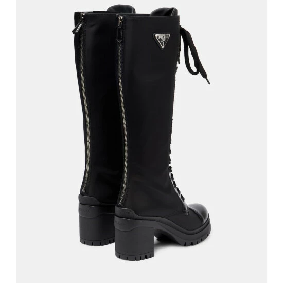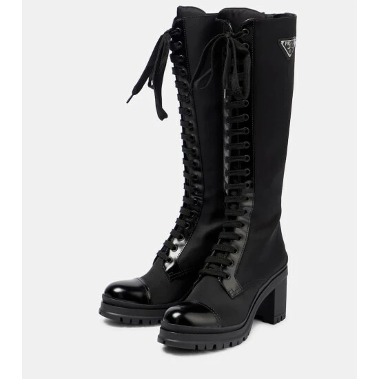 These knee-high lace-up boots from Prada are made from the brand’s durable recycled nylon. They are detailed with thick lugged soles and block heels as well as brushed spazzolato leather toecaps.