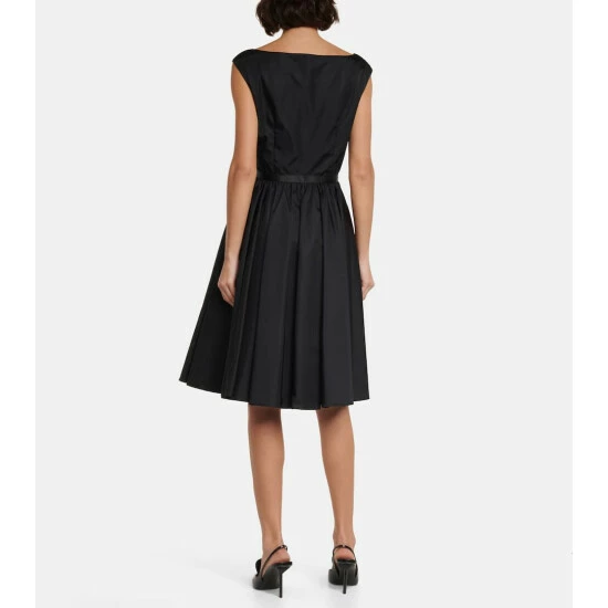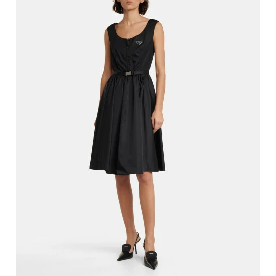 A dress made from Prada’s recycled nylon gabardine is a collector’s piece for loyal fans. True to the label’s aesthetic, this retro-meets-modern style has a ’50s inspired silhouette – a wide neckline, a circle skirt – with futuristic details like a side-release buckle and a zip front. All you need is a pair of loafer pumps to create an on-brand look.