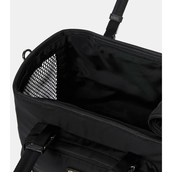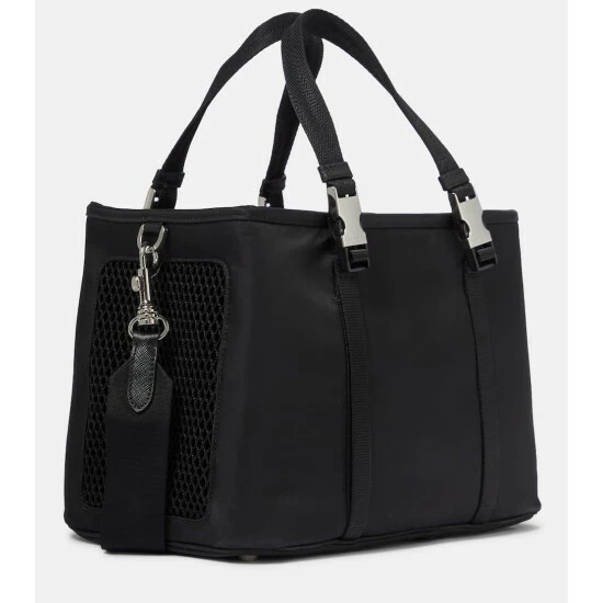 The most pampered pets opt for transportation via Prada’s black carrier. Made from recycled nylon as a nod to the label’s sustainability initiative, it has mesh sides for added breathability and is fitted with an assortment of pockets for housing all their essentials.