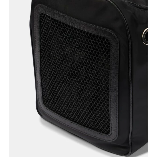 Prada’s streamlined vision defines this pet carrier. Made from Re-Nylon in Italy, this spacious accessory is punctuated with the triangle logo plaque and boasts a detachable miniature pouch, buckled hardware, eyelet detailing, and multiple compartments.