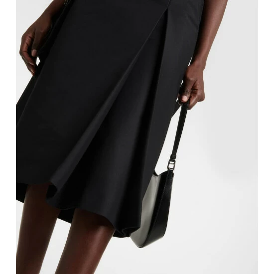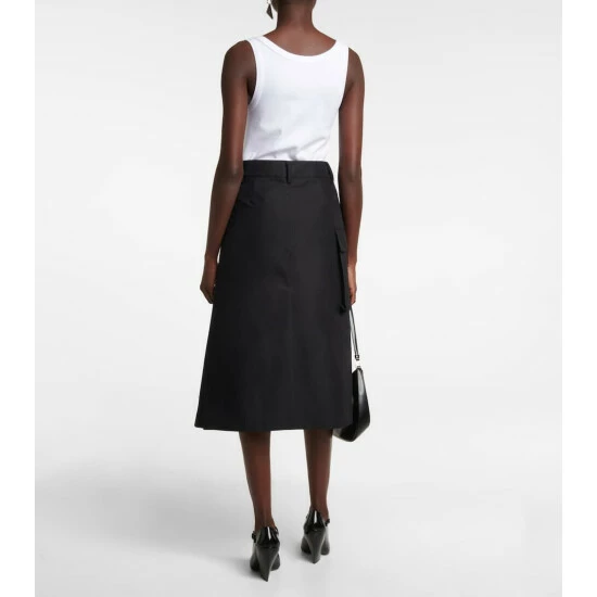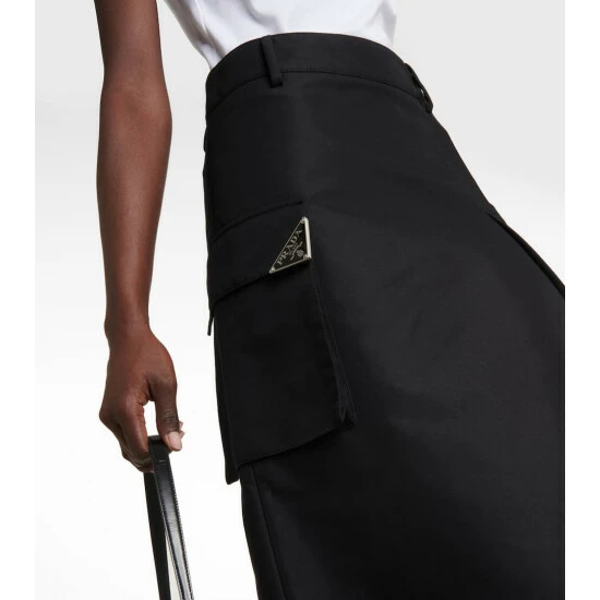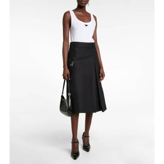 This midi skirt from Prada’s latest collection features an off-center box pleat and the iconic triangular logo on the side pocket. It’s made entirely from re-nylon gabardine – a sustainable take on the label’s signature fabric.