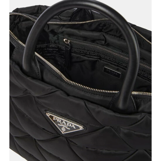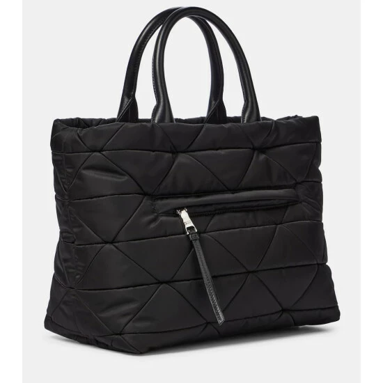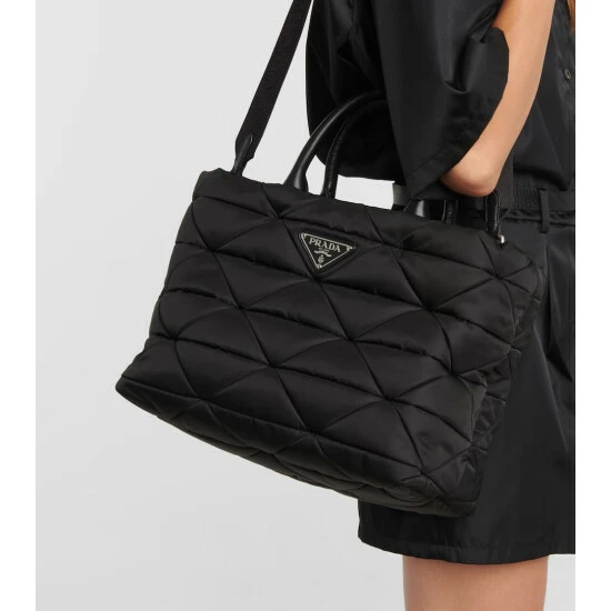 This black Re-Nylon tote from Prada is both a sustainable and stylish choice. It’s diamond-quilted and filled with light padding for a soft touch. Leather top handles and an enameled triangle logo plaque complete this design.