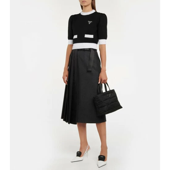 There’s something about this black Re-Nylon tote that instantly says Prada – and it’s not just the enameled triangle logo plaque. It’s cut from the collection’s eponymous fabric that’s filled with soft padding and then diamond-quilted throughout. We love that it comes with its own small pouch, too.