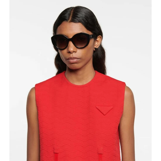 Opt for a most stylish pair of sunglasses to accompany you everywhere with this design from Prada. Made from black acetate, they come an oversized round silhouette and grey-tinted lenses. Please note that the carrying case may vary in style and color.