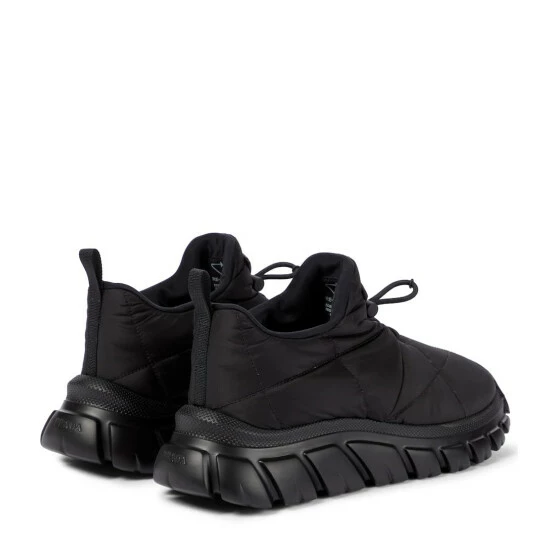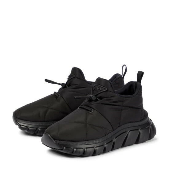 Embrace sustainability with these black Rush sneakers from Prada. Made from ECONYL® uppers – a recycled nylon gabardine derived from plastic waste found in the oceans – they’re set atop chunky, lifted soles with ultra-soft foam accents.