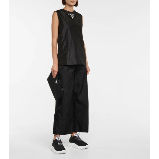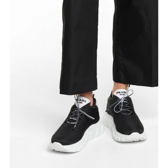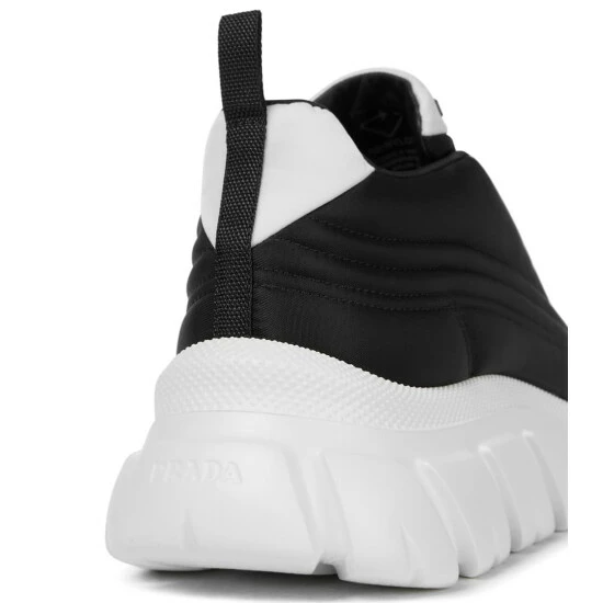 Embrace sustainability with these black Rush sneakers from Prada. Made from ECONYL® uppers – a recycled nylon gabardine derived from plastic waste found in the oceans – they’re set atop chunky, lifted soles with ultra-soft foam accents. Note the rubberized logo detailing at the tongues for instant recognition.