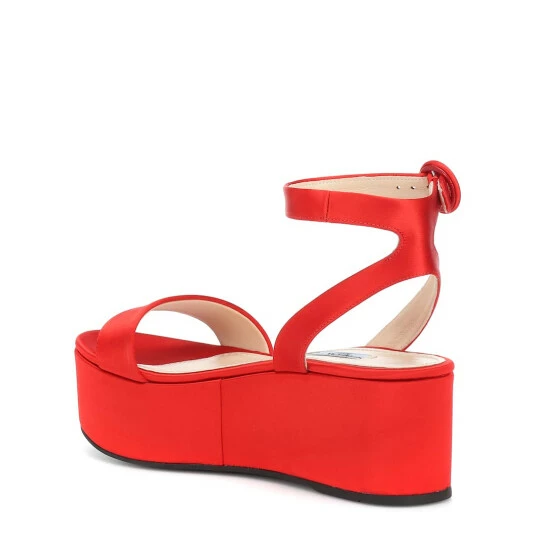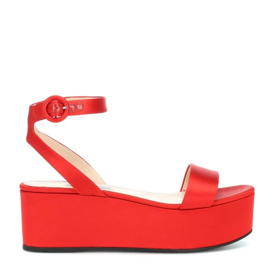 Prada saturates this pair of platform sandals in a fiery red hue, making them a striking addition to your warm-weather footwear edit. The retro-cool silhouette has been crafted in Italy from lustrous satin that promises to instantly elevate everyday and after-dark ensembles alike. Style yours with neutral looks to keep the bold colorway the focus of your outfit.