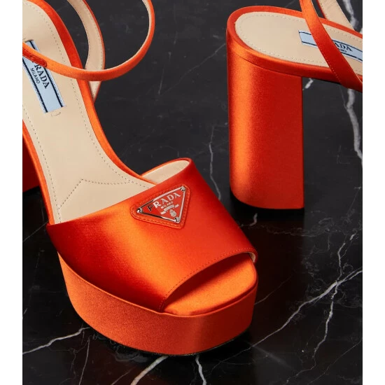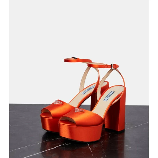 These platform sandals from Prada will add elegance and elevation to your outfit. Made in Italy from satin and leather, this design has a square toe and features metallic triangular logo embellishments.