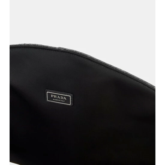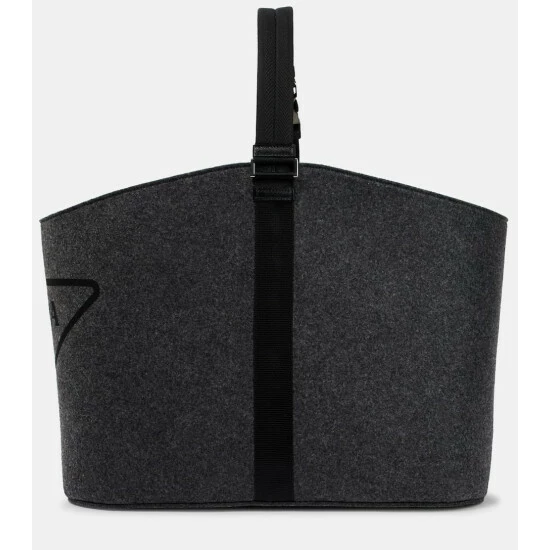 Carry your essentials in signature Prada style with this sculptural tote bag. Made in Italy from brushed technical felt, it features a structured silhouette, a logo-stamped front, and an adjustable central handle with buckle detailing.