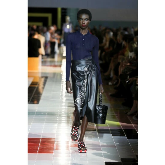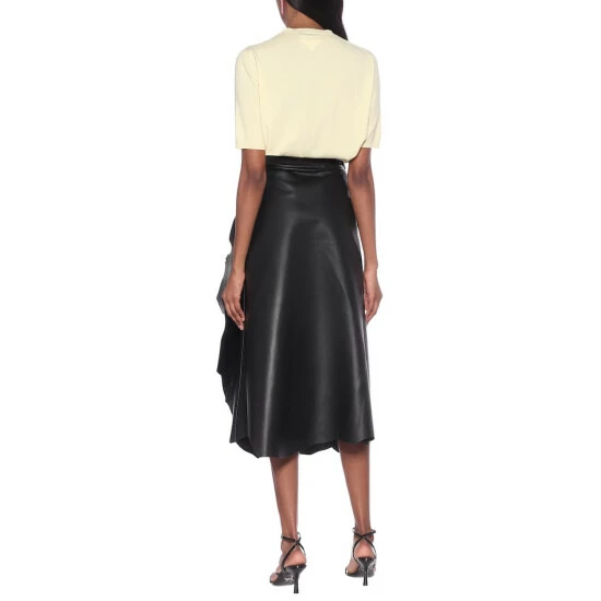 Prada’s stunning wrap skirt has been crafted in Italy from black lamb leather and comes embellished with an intricate sequined feather motif. The high-rise design fastens at the side of the waist with a ribbon tie and falls in supple folds to a midi-length raw hem.