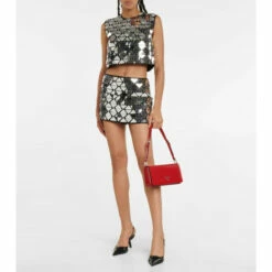 Prada takes an ultra-edgy approach to the sequined crop top by repurposing its triangle signature. Made from sheer silk, the sleeveless design is embellished with mirrored triangle sequins and finished with logo patch embroidery and rear zipper closure.