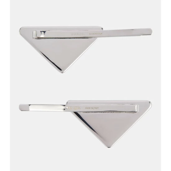 Showcase your devotion to Prada with any look, courtesy of these hair clips. They’re made from steel and adorned with the house’s iconic triangle logo plaques.