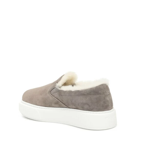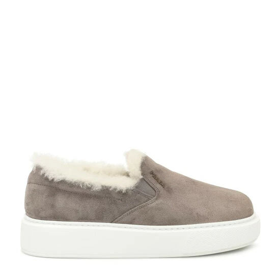 Luxurious staples are necessary for WFH days, so opt for these shearling-lined slippers from Prada. Set on flat rubber soles, the design consists of gray suede outers with rounded toes and logo detailing to the front. Wear them with chunky knits and cashmere trackpants throughout your home.