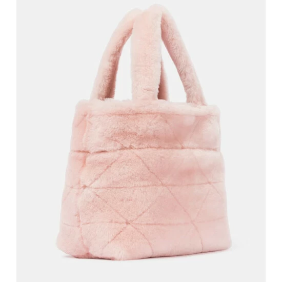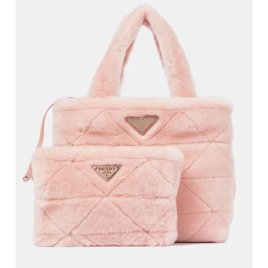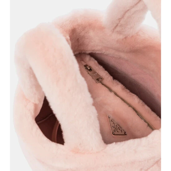 Reboot your accessories for the cooler months with this light pink shearling tote from Prada. Featuring the label’s iconic triangular logo โ and a pattern throughout to match โ it comes with a matching zip pouch. Attach the slender leather shoulder strap for days when you want to go hands free.