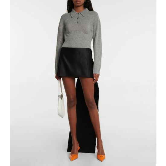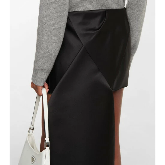 This statement miniskirt from Prada will look as good on you as it did on the runway. Made from heavyweight silk satin in classic black, this high-rise design features a floor-length train.