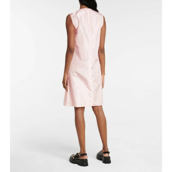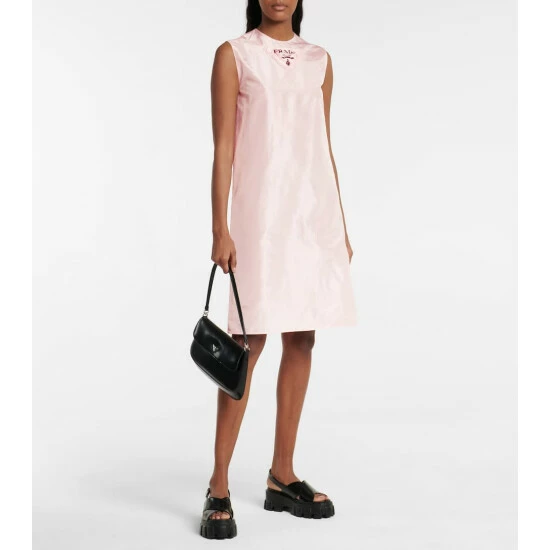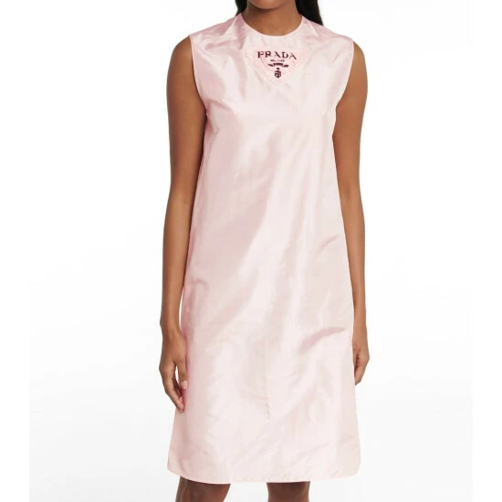 This pink shift midi dress from Prada champions the color palette of the season: pastels. Fresh from the eagerly awaited debut collection by Raf Simons, it’s made from lightweight taffeta and adorned with a fabric triangular logo plaque. Style yours with the labels point-toe slingback pumps.