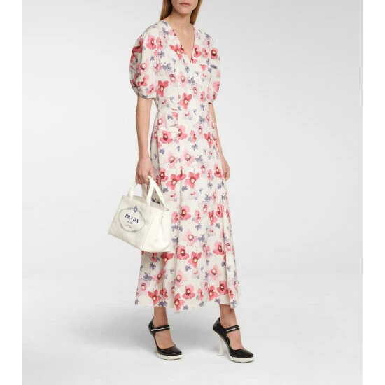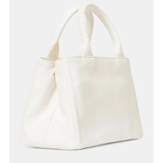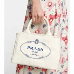 Prada devotees will be keen to add this white and navy blue tote to their accessories arsenal. The canvas design is adorned with a silk-screened logo print and a plaque on the striped interior. When practicality is a necessity, opt for the detachable guitar shoulder strap.