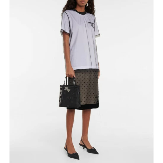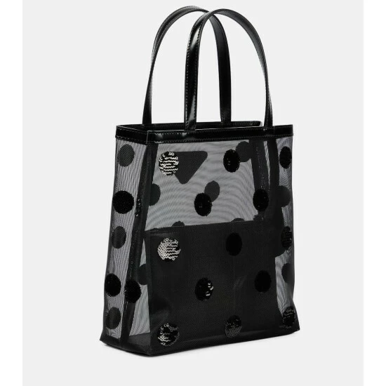 Prada’s longstanding love of mesh is updated with this sequined polka-dot tote. The semi-sheer small-sized design features brushed calfskin leather trims and houses a practical pouch. Triangular logo plaques, meanwhile, lend unmissable recognition.