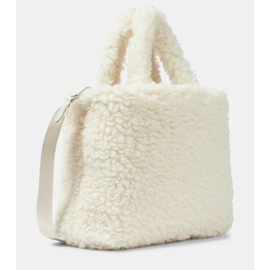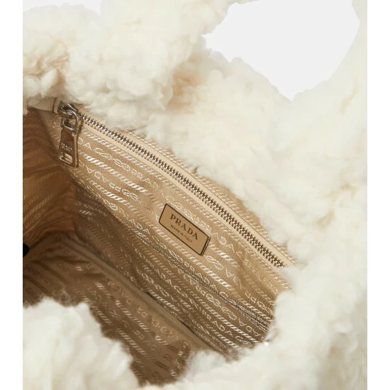 This small tote from Prada is made with soft teddy wool and cashmere blend for a tactile finish. An interior zipped pocket and a removable shoulder strap make this piece both practical and stylish.