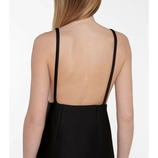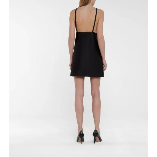 Miuccia Prada’s eye for minimalist yet striking lines shines through in this black minidress. Made in Italy from structured cady, which incorporates wool and stretch fibres for added softness, it has an A-line silhouette with slender shoulder straps and a silk-blend lining that sits gently against the skin. Swing a Cleo bag next to yours.