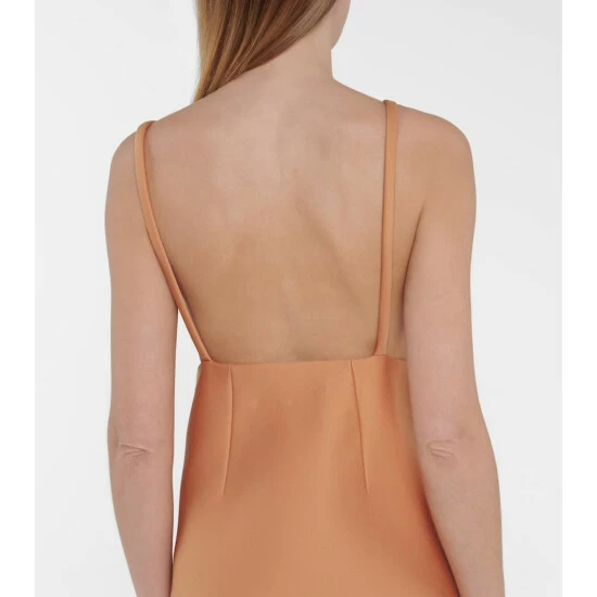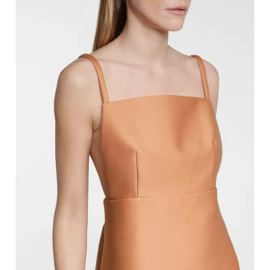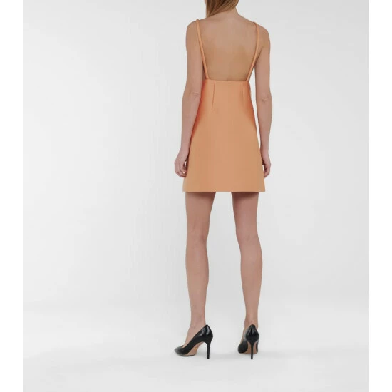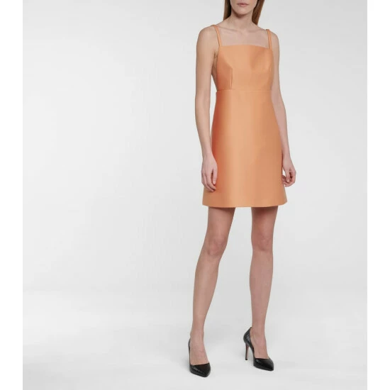 Miuccia Prada’s eye for minimalist yet striking lines shines through in this peach-hued minidress. Made in Italy from structured cady, which incorporates wool and stretch fibres for added softness, it has an A-line silhouette with slender shoulder straps and a silk-blend lining that sits gently against the skin. Swing a Cleo bag next to yours.
