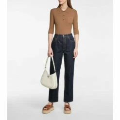 Prada promotes the not-so-basic basic with this ribbed-knit cashmere-blend polo shirt. This sleek and longline top makes its mark in a warm beige colorway, along with an embroidered patch pocket and elegant elbow-length sleeves. An element of stretch has been blended in for assured comfort when WFH or bound to your desk in the office.