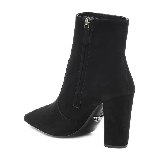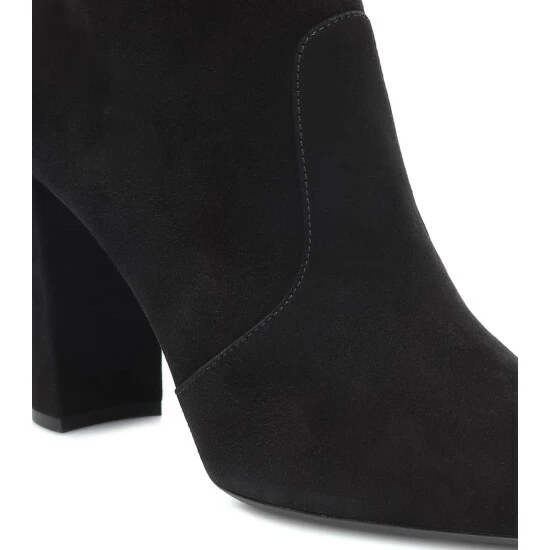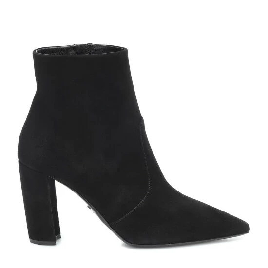 Utterly timeless yet incredibly chic, these suede ankle boots from Prada are sure to become your latest wardrobe warrior. They are crafted in Italy from supple black suede with a pointed toe, a slim fit, and a tall block heel. Wear yours with everything from denim to dresses year after year.