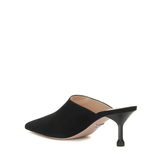 Let this pair of modern mules from Prada elevate your after-dark edit. The backless style has been crafted from plush black suede into a pointed-toe silhouette, which is set on the label’s signature sculpted kitten heel. We like how the refined style brings minimalist edge to ’90s slip dresses and borrowed-from-the-boys tailoring.