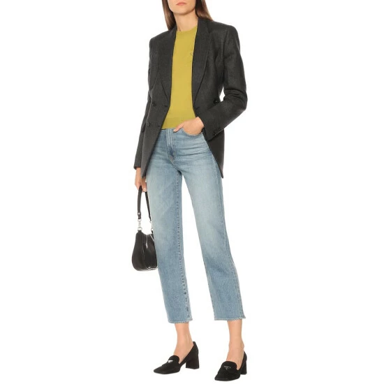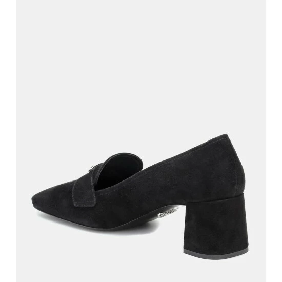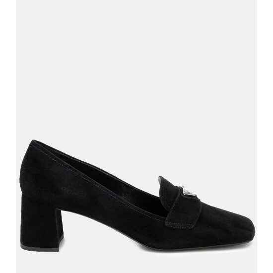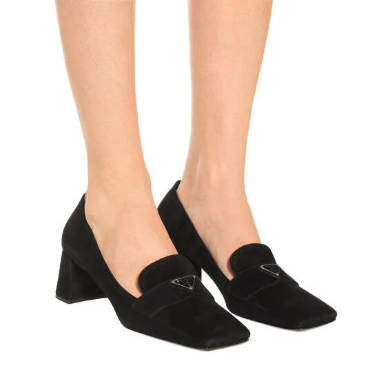 These Prada pumps remind us of the of the personal style of the label’s iconic head designer. Cutting the tension between modernity and nostalgia, the suede design has retro square toes and the coveted triangle logo plates at the vamp.