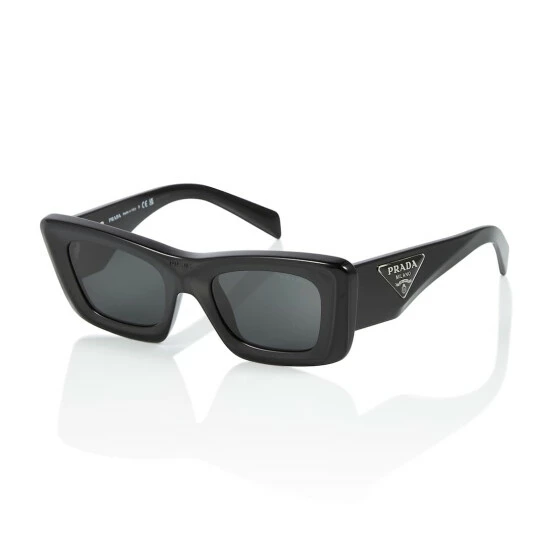 The Symbole sunglasses have a faceted, cat-eye frame and feature tinted black lenses. This piece features Prada’s iconic triangular logo plaque, which embodies simplicity, elegance, and quality.