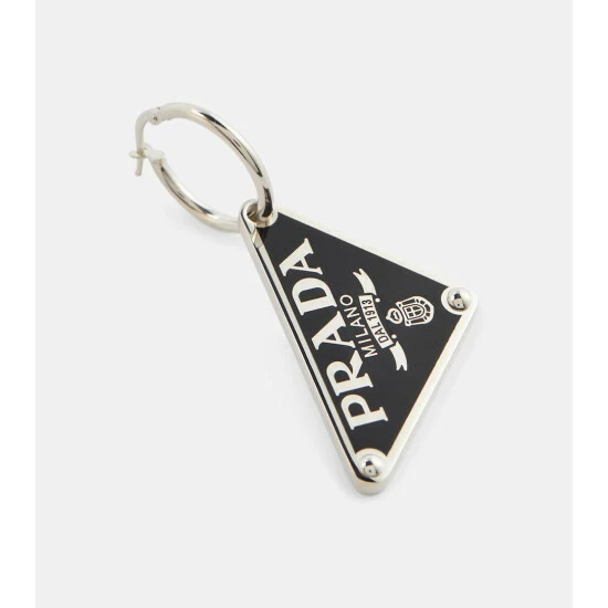 With the Symbole single earring from Prada, you can accessorize with the house’s iconic logo in more ways than with bags and shoes. It’s made from 925 sterling silver and black enamel, with a simple hoop fastening.