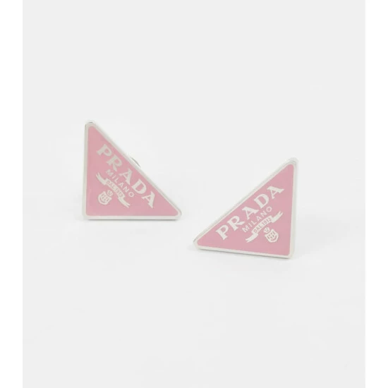 Treat yourself, or a fellow Prada devotee to the Symbole triangular logo stud earrings in pink. Made from enameled sterling silver, they bear iconic logo detailing, and fasten with butterfly clasps suitable for pierced ears.