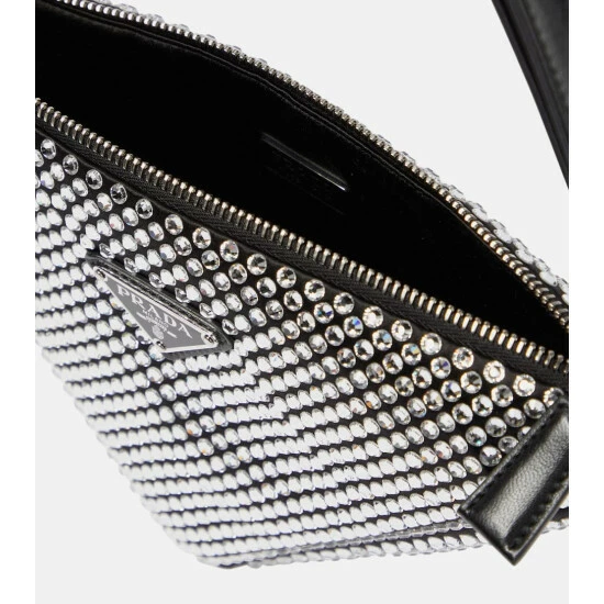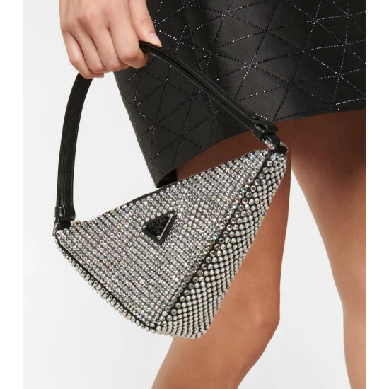Prada’s coveted logo plate is mirrored by this triangular-shaped crystal-adorned pouch. Set to be a wishlist favorite, the iconic silhouette features a delicate leather shoulder strap and is finished with a silver-toned zip.