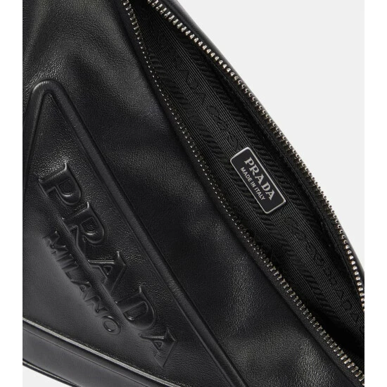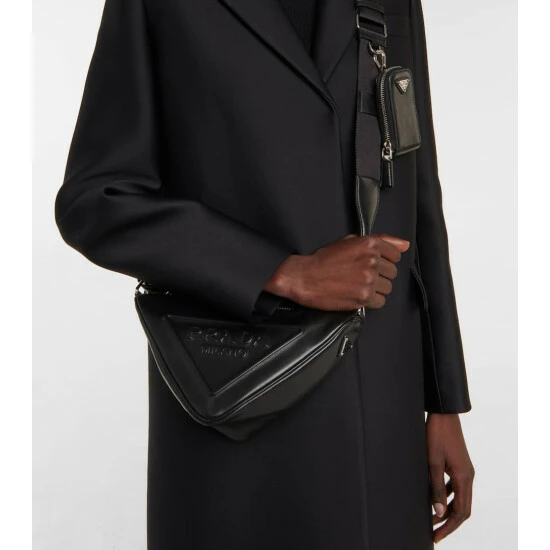 Prada’s triangle bag is a fresh interpretation of the Italian brand’s house code, the triangle. Made in Italy from black leather, the iconic silhouette is accented with embossed branding and it comes with a detachable pouch.
