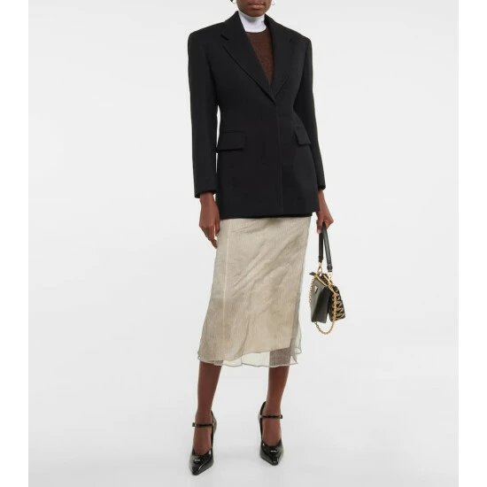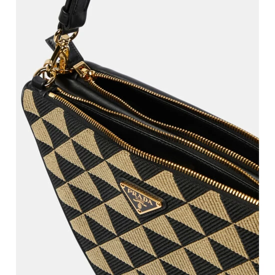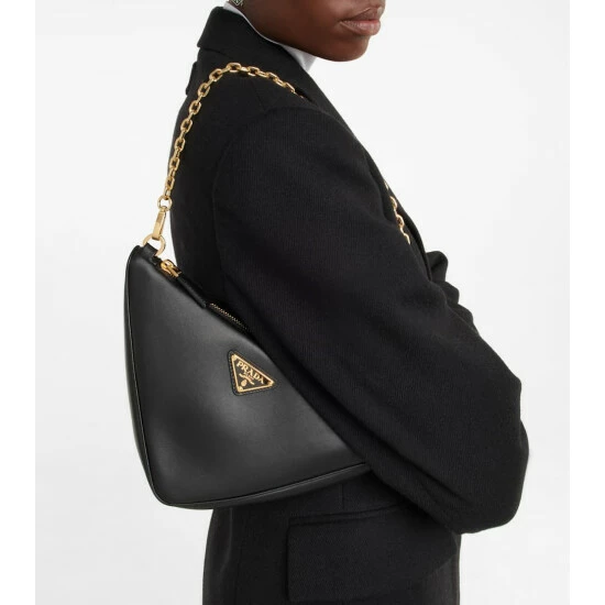 Aptly named, Prada’s Triangolo shoulder bag is defined by its triangular jacquard patterning. Trimmed with leather, it has a chain shoulder strap and a zipped front.