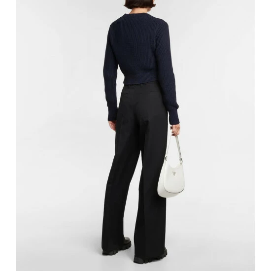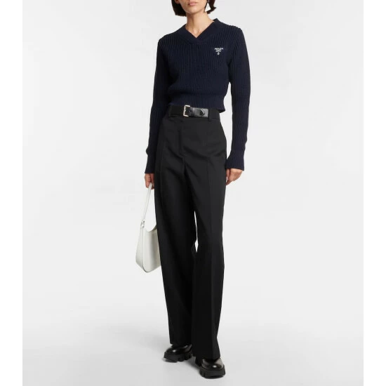 Transition between seasons in effortless style with this versatile cotton rib-knit sweater from Prada. It features a V-neck and cropped silhouette, adorned with the label’s signature embroidered logo.