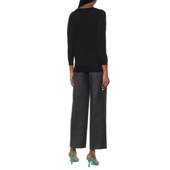 Add a luxe essential to your edit in the form of this black sweater from Prada. Crafted entirely from virgin wool, the relaxed-fit design features a V-neck front and cropped sleeves for easy-to-layer appeal. Wear yours with anything from denim to pencil skirts.