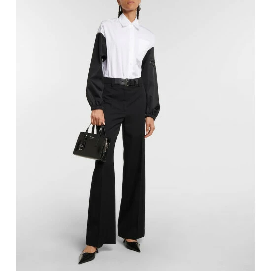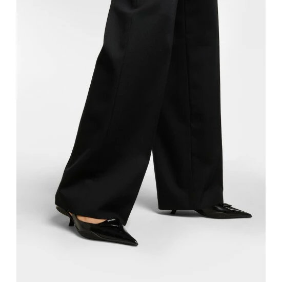 Prada designs these virgin wool twill pants with a leather belt detail for an adjustable rise and fit. They’re shaped into a wide-leg silhouette and feature pressed pleats and on-seam pockets.
