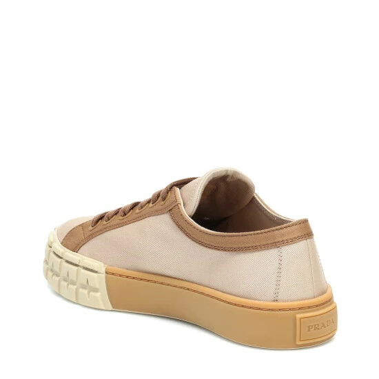 Prada’s Wheel sneakers have been crafted in Italy from a dynamic mix of neutral-toned canvas. Crafted in Italy, this low-top pair secures with a lace-up fastening, and is set on a trekked rubber sole meant to mimic a tire wheel. Match its contemporary feel with distressed denim.